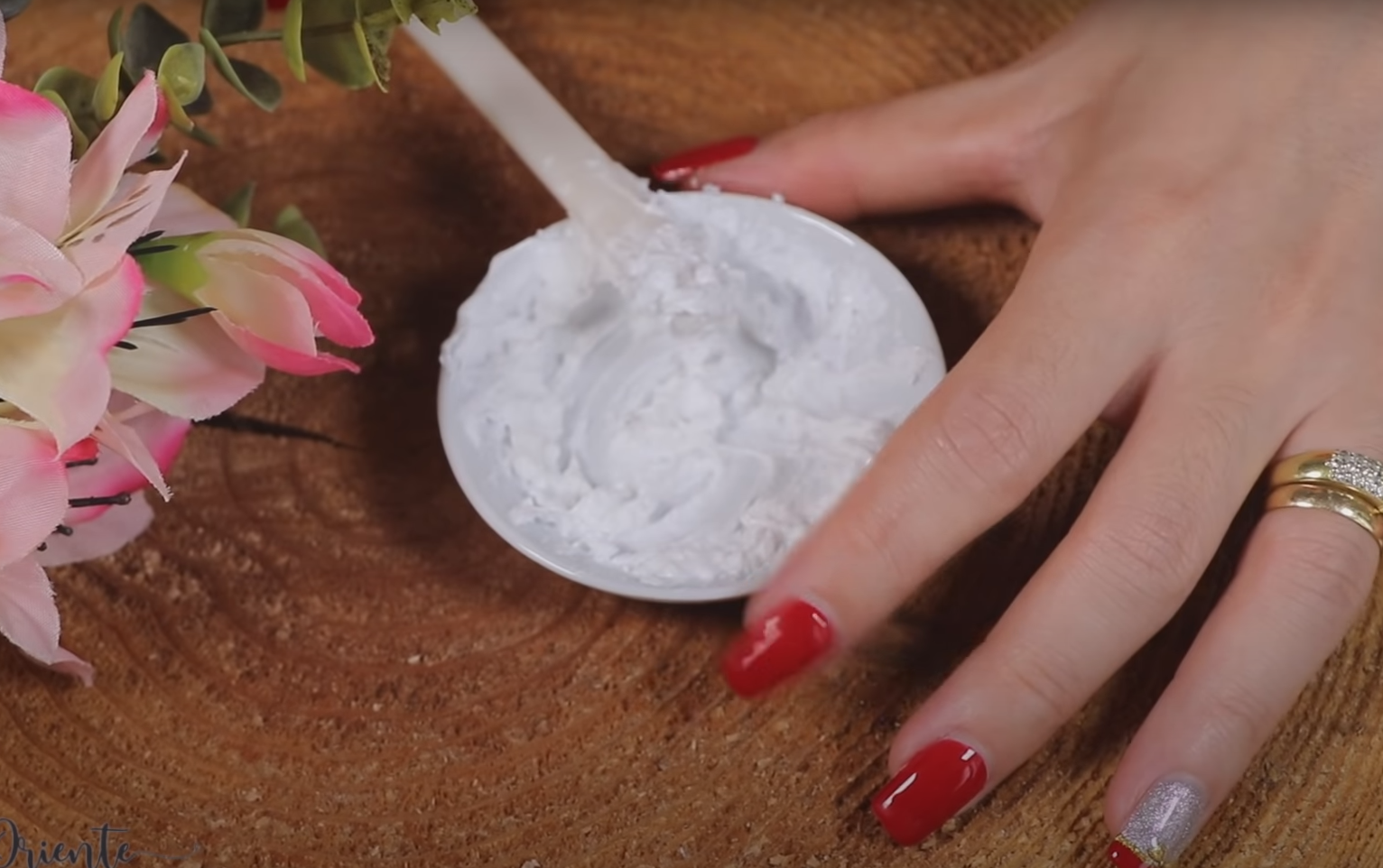 Teraz nałóż tę kremową mieszankę na twarz. Delikatnie masuj okrężnymi ruchami.