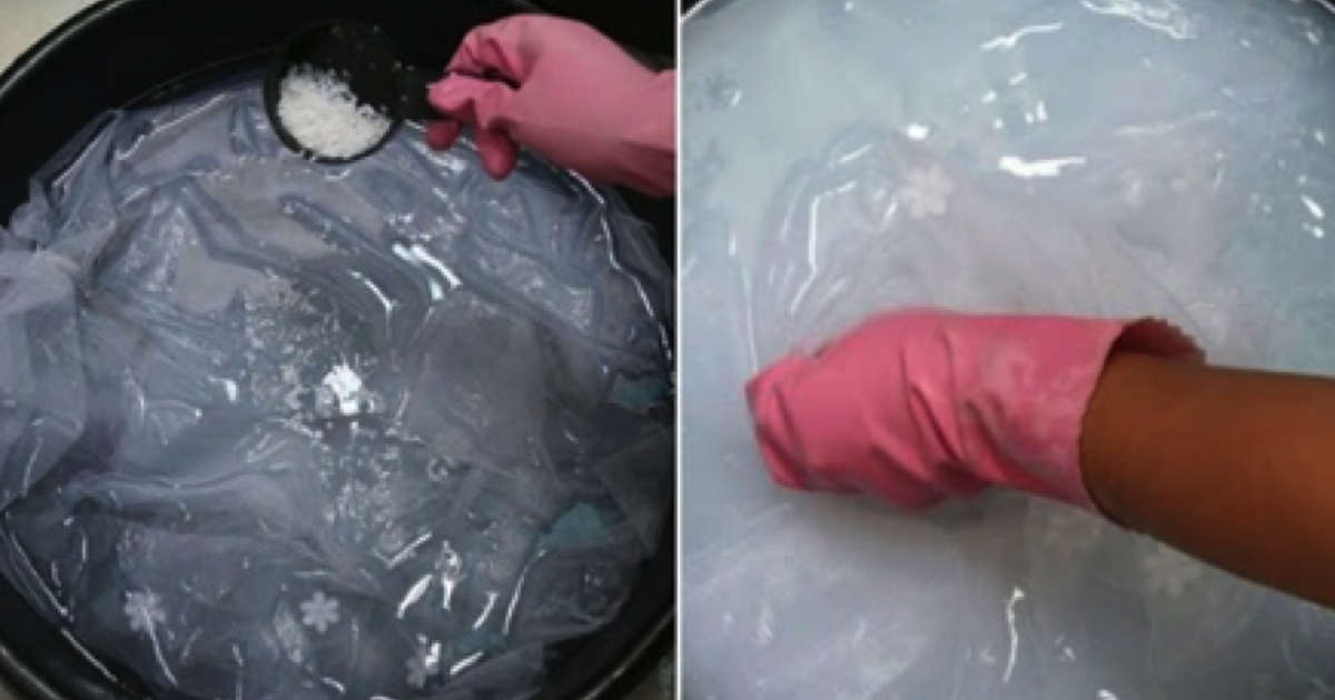 Zmieszaj w misce gorącą wodę z dwiema łyżkami soli na każdy litr wody. Powstanie doskonały roztwór do prania ręcznego zszarzałych, zmatowiałych tkanin.
