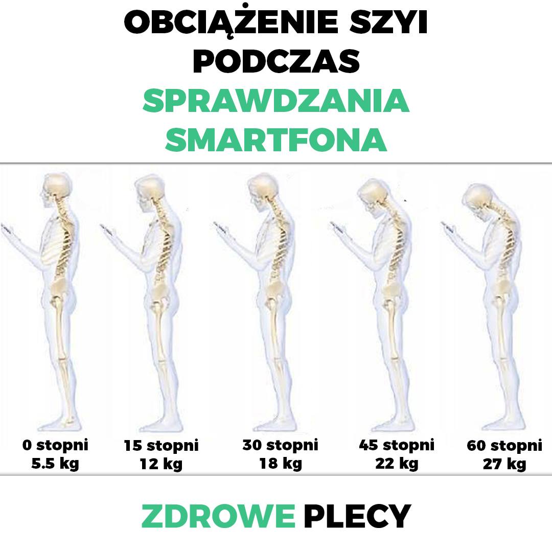 Obciążenie szyi podczas korzystania ze smartphona to nawet 23 kg! Cały ten ciężar noszą mięśnie karku. Jeśli codziennie korzystasz z telefonu w ten sposób, możesz być pewien, że ta czynność odbije się na Twoim zdrowiu.