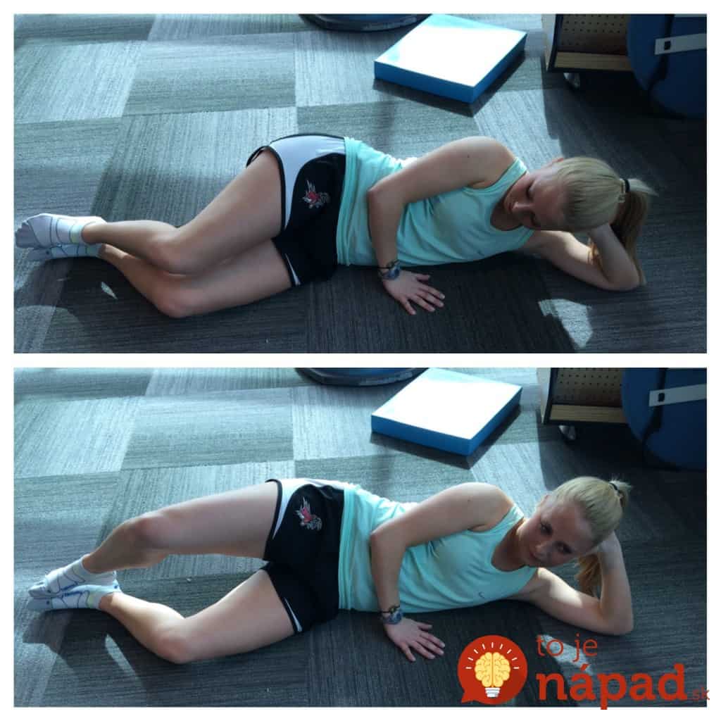 Znowu kładziemy się na boku i składamy stopy razem tak, aby stopy się zetknęły. Teraz postaramy się jak najbardziej rozsunąć kolana tak, aby nie dotykały już kolan (są nadal połączone) ponownie utrzymujemy tę pozycję przez 15 sekund.