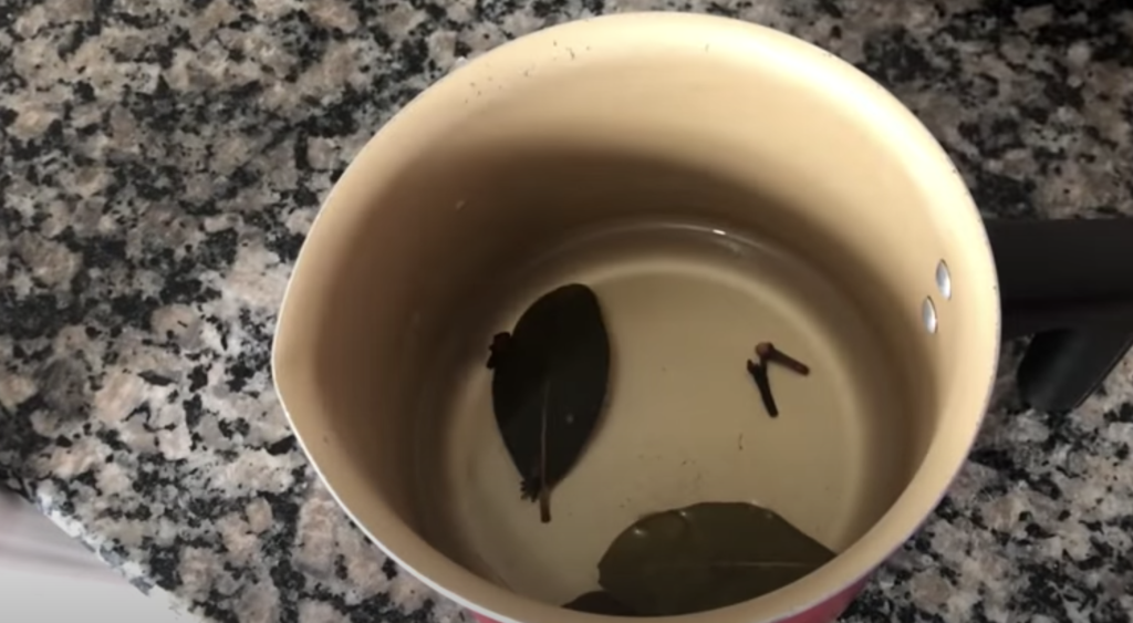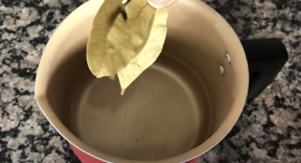 Dwa umyte liście laurowe włożyć do wody i postawić na palnik.