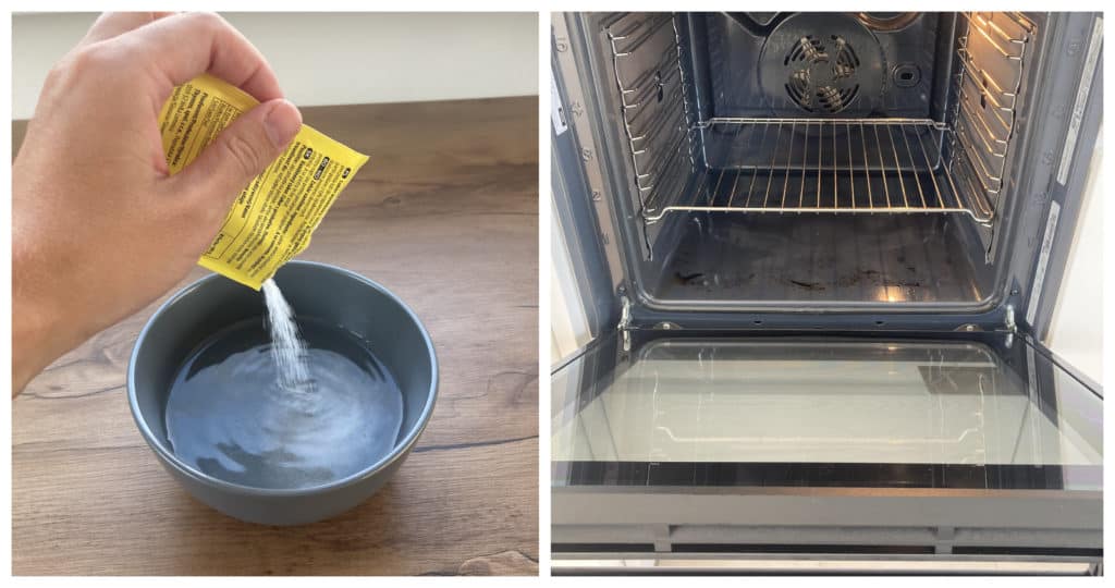 Aby uzyskać skuteczny detergent, zmieszaj 1/4 szklanki wody, soli i sody oczyszczonej w gęstą pastę. Zwilż piekarnik wewnątrz i na zewnątrz i nakładaj tę mieszaninę na kilka godzin lub nawet na noc. Możesz również dodać trochę detergentu.
