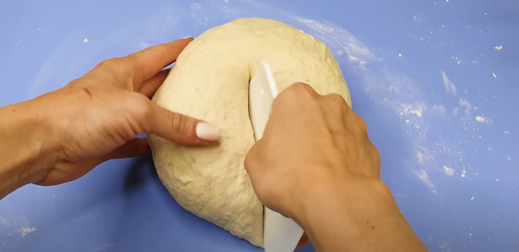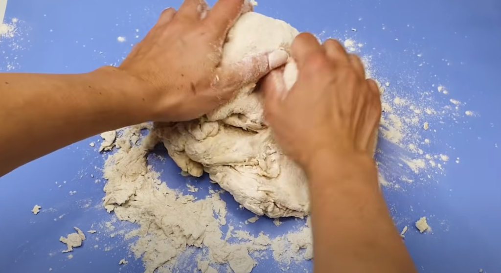Wyłóż ciasto na podsypaną mąką deskę i zagnieć przez około 10 minut.