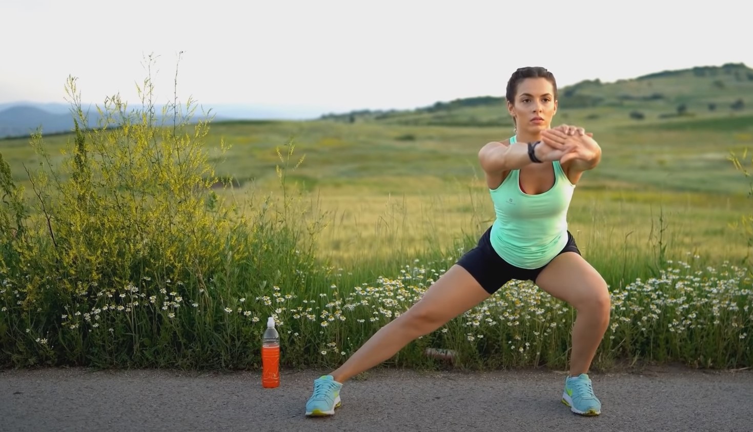 Stań z szeroko rozstawionymi nogami i uginaj nogę w kolanie raz w jedną stronę, raz w drugą, naprzemian. Ciało napięte, plecy wyprostowane. Powtarzaj przez 30 sekund.