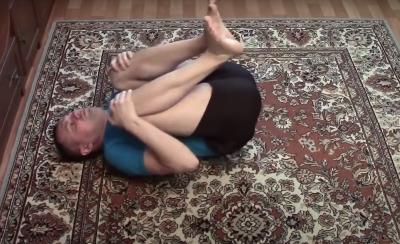 Podczas tego ćwiczenia połóż się na plecach, ręce ułóż wzdłuż ciała, zegnij kolana i postaw stopy na ziemi. Obejmij rękoma kolana i przyciągnij je do piersi. Następnie wróć do pozycji wyjściowej i ponownie opuść ręce wzdłuż ciała. Powtórz 10 razy.