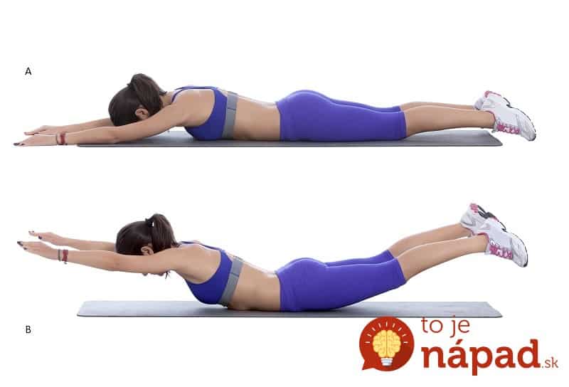Następne ćwiczenie nazywa się Superman. Połóż się na macie i wyciągnij przed siebie ramiona. Następnie podnieś ręce i nogi. Trzymaj głowę i ręce prosto. Przytrzymaj przez 2 sekundy, aby powrócić do pozycji wyjściowej. Powtórz 10 razy. To ćwiczenie jest również dobre dla wzmocnienia mięśni innych niż tylko biodra.