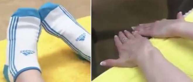 To bardzo proste! – W pierwszej kolejności zroluj ręcznik w wałek i zabezpiecz jego końce taśmą lub sznurkiem, żeby się nie rozwinął.