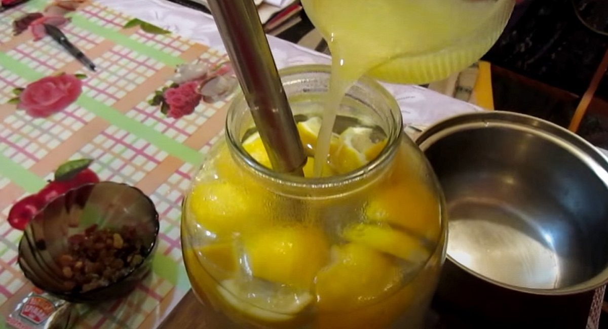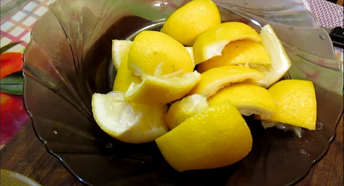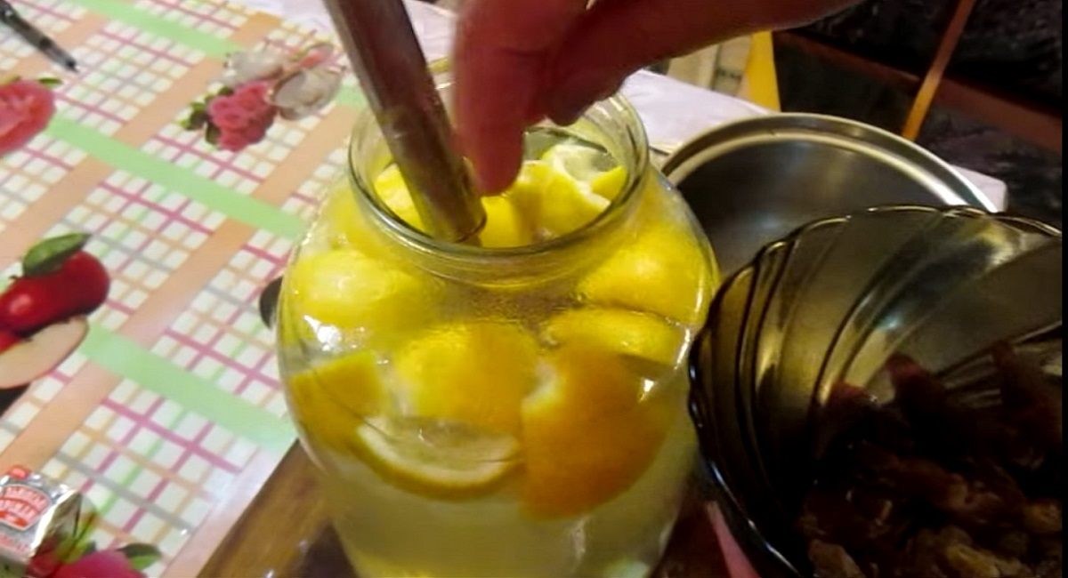 Każdą cytrynę przetnij na pół, wyciśnij sok i usuń miąższ. Pozostałą skórkę pokrój na kawałki i włóż do słoika.