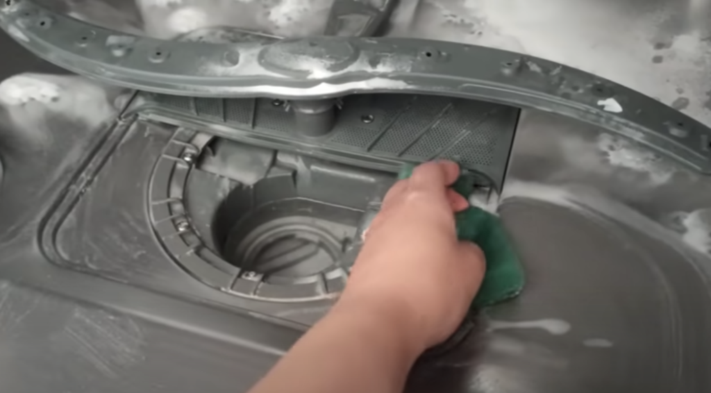 Pozwól mu działać i w międzyczasie wyczyść zdejmowane części zmywarki. Możesz użyć dowolnych środków.