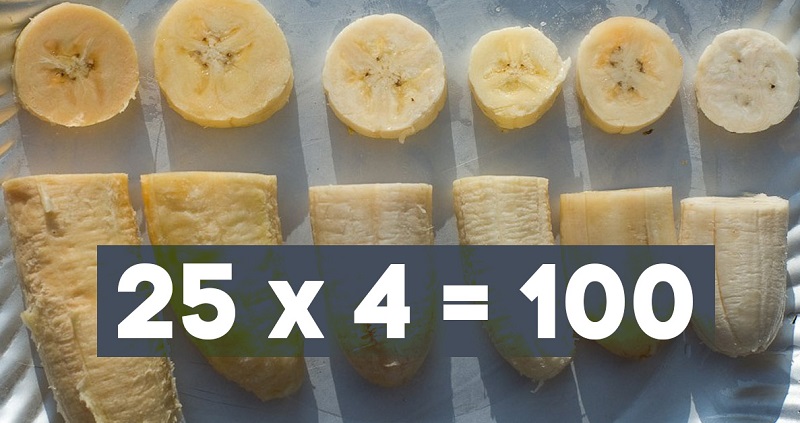 Przyjmijmy, ze średniej wielkości banan zawiera w sobie 25 gramów węglowodanów. Po przemnożeniu okazuje się, że ma on 100 g kalorii cukrowych.