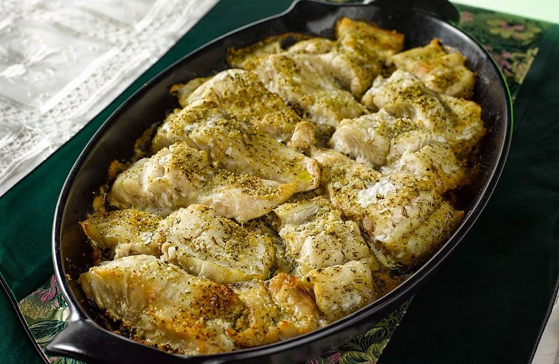 Obiad: smażona lub gotowana ryba z surówką warzywną (biała kapusta, pomidory, ogórek, świeże zioła)