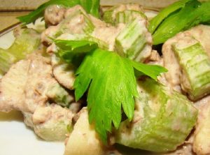 Rozgnieć tuńczyka za pomocą widelca. Wymieszaj widelcem seler naciowy. Doprawić oliwą z oliwek, sokiem z cytryny i pieprzem. Możesz wybrać jedną wersję zupy i jedną wersję sałatki. W ten sposób uzyskasz zdrowy, niskokaloryczny posiłek. Dietę można kontynuować po upływie miesiąca. Do posiłków można dodawać różne rodzaje zup i sałatek. Każdego dnia należy wypijać 1,5-2 litry wody.