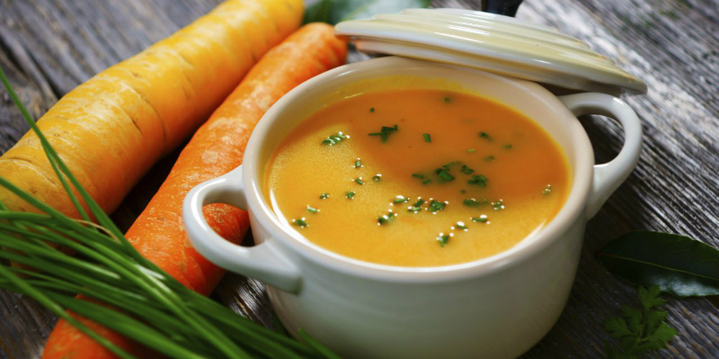 Obiad – krem z marchwi (350 g) i gotowana pierś z kurczaka (100 g).