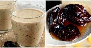 Umieść śliwki w gorącej wodzie i pozwól im się namoczyć przez 5 minut. Połącz śliwki z pozostałymi składnikami w blenderze i dobrze wymieszaj. Umieść na noc w lodówce. Rano zjedz porcję na śniadanie. Jeśli lubisz smoothie, możesz dodać więcej kefiru. Możesz też polubić płatki owsiane.