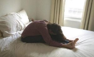 Rozluźnij się na łóżku. Weź głęboki oddech. Weź głęboki wdech, a następnie wydech. Teraz weź głęboki, powolny wdech i wydech. Następnie pochyl się jeszcze bardziej. Powtórz tę czynność 10 razy i rozluźnij ciało. To przygotuje Twój kręgosłup na pracowity dzień.