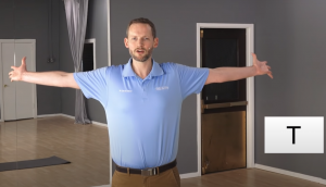 Na koniec podnieś ręce do pozycji „T”, podnosząc całe ręce tak, aby były na poziomie barków na poziomie gruntu. Nie podnoś ramion, dłonie skierowane do przodu, zdejmij klatkę piersiową i przyciągnij łopatki do siebie. Wstrzymaj przez 2 oddechy i zwolnij.