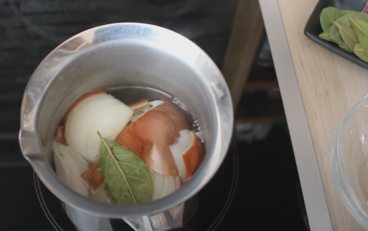 Do tej ilości wody dodajemy 1-2 liście laurowe. Gotujemy razem z cebulą.