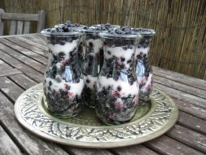 Jagody dobrze wypłukać na sicie. Przelać do szklanego słoja. Jagody posypać 1 szklanką cukru. Nałóż pokrywkę na słoik i postaw go w nasłonecznionym miejscu (np. aby puściły sok, postaw słoik na parapecie lub balkonie). Po trzech-czterech tygodniach wlej do słoja jeden kieliszek wódki lub spirytusu. Następnie umieść go w szafce kuchennej.