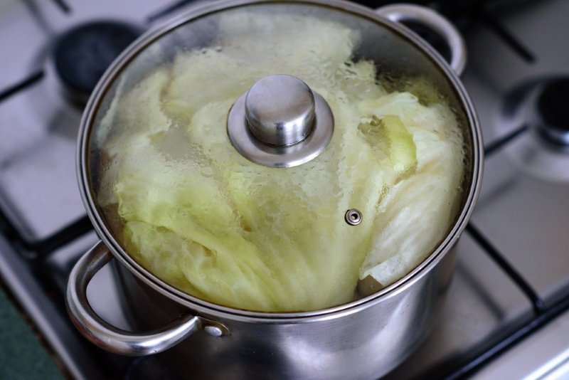 Oddzielone liście należy gotować jeszcze przez następne dwie minuty, po czym wyjmujemy je i doprowadzamy do temperatury pokojowej. Dalej należy pozbyć się twardych części kapusty.
