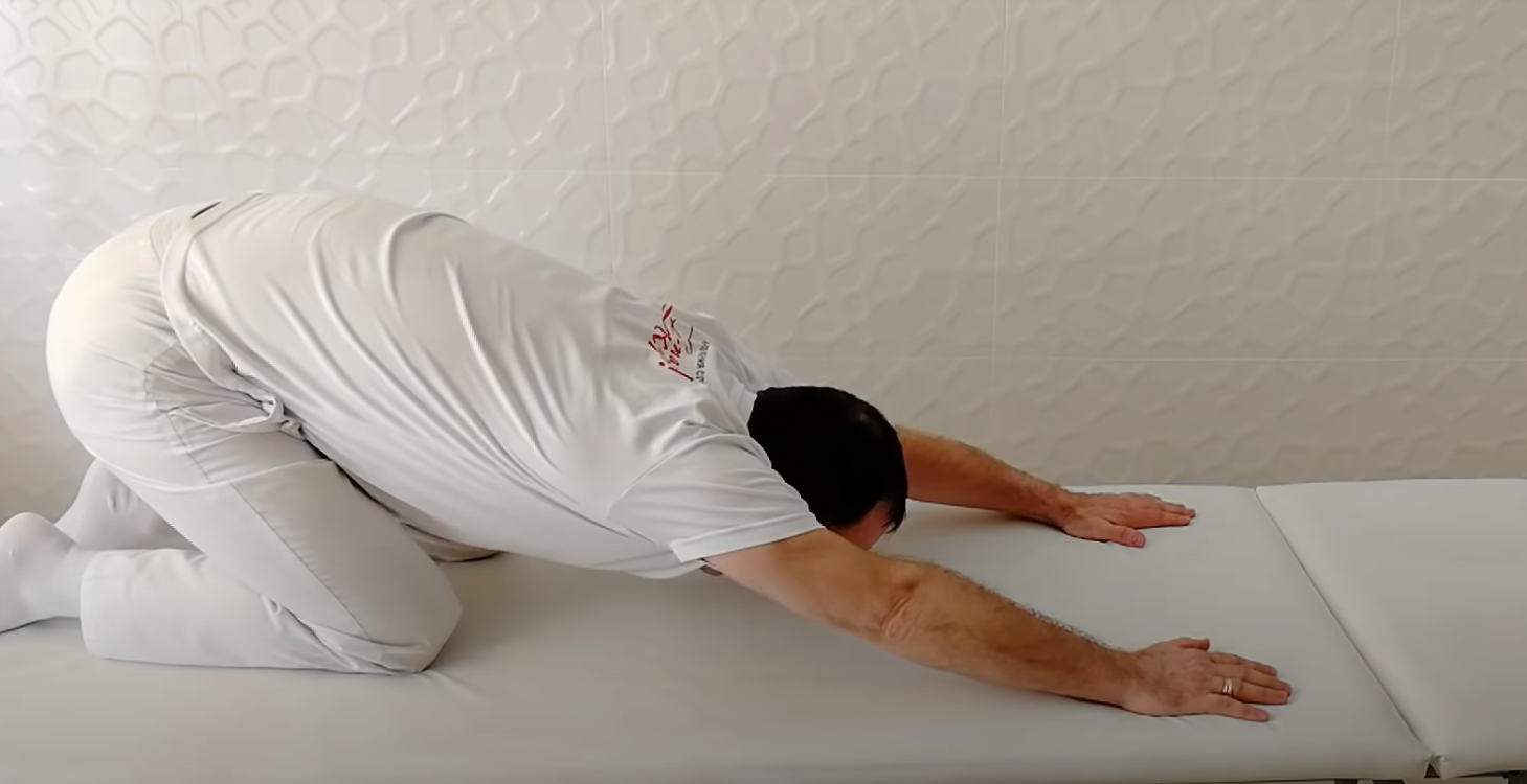 Nie musisz ściągać klatki piersiowej na matę, po prostu podciągnij tyłek do pięt. Możesz odczuwać ból po pierwszych dwóch powtórzeniach, ale po czterech lub więcej ból powinien się zmniejszyć. Powtórz 15 do 20 razy. Jeśli ból staje się coraz bardziej intensywny, lepiej pominąć to ćwiczenie.