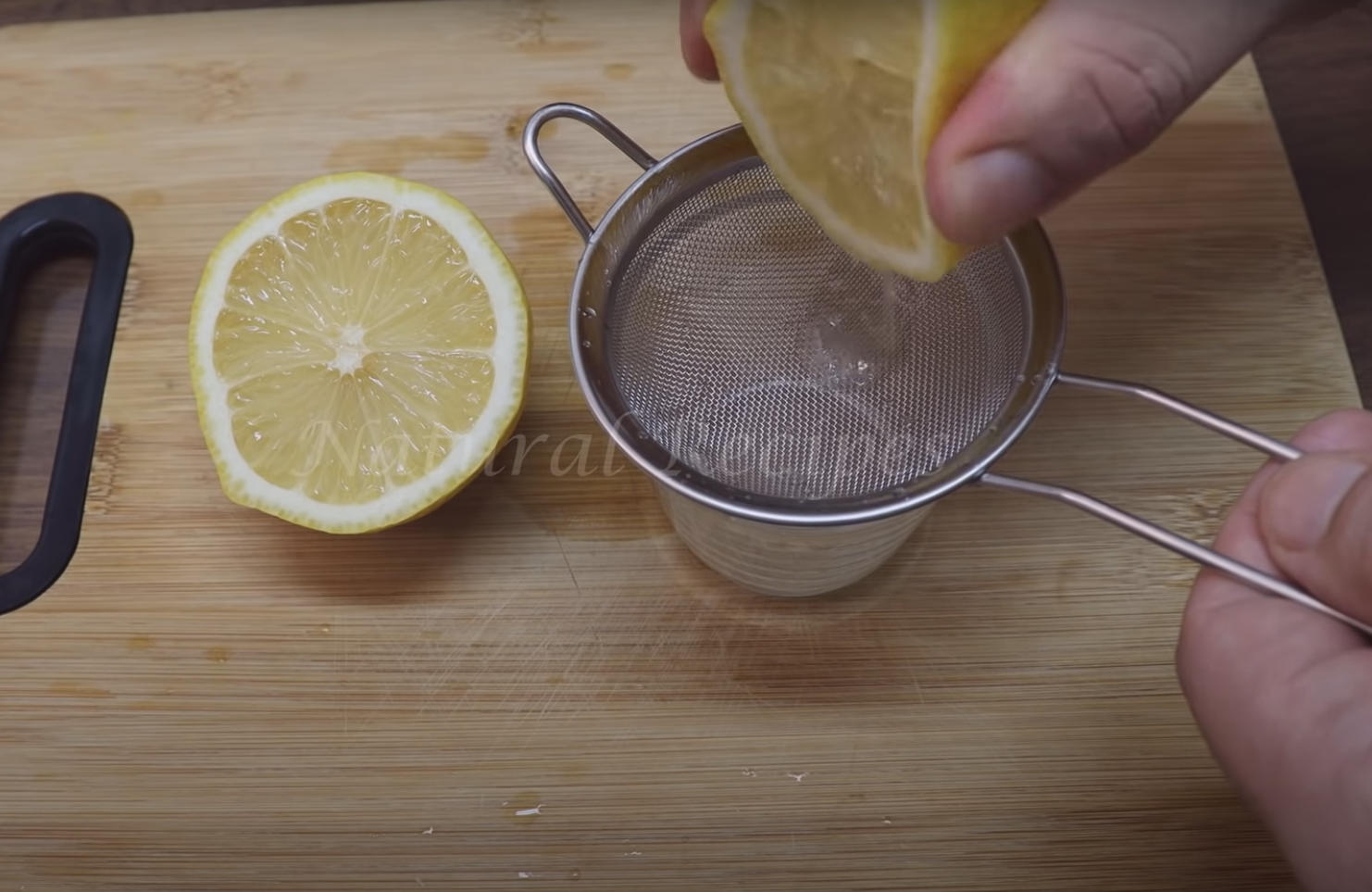 Cytrynę umyć, przekroić na pół i wycisnąć.