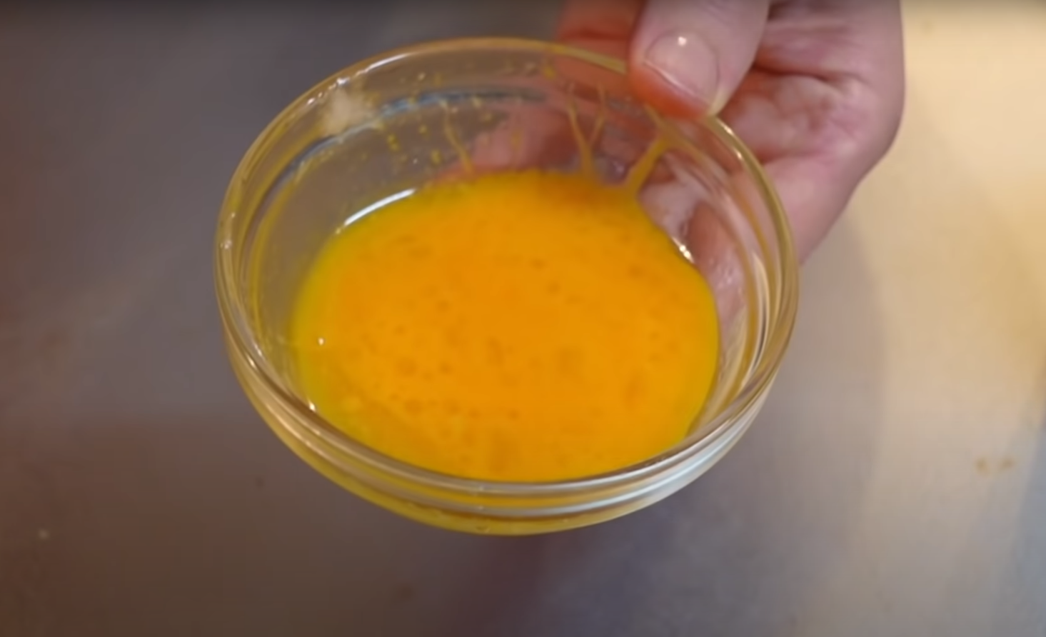 Oddziel żółtko i białko jajka, rozbijając je. Żółtko wymieszaj w miseczce z miodem, oliwą z oliwek i olejem kokosowym. Następnie dodaj napar z rumianku.
