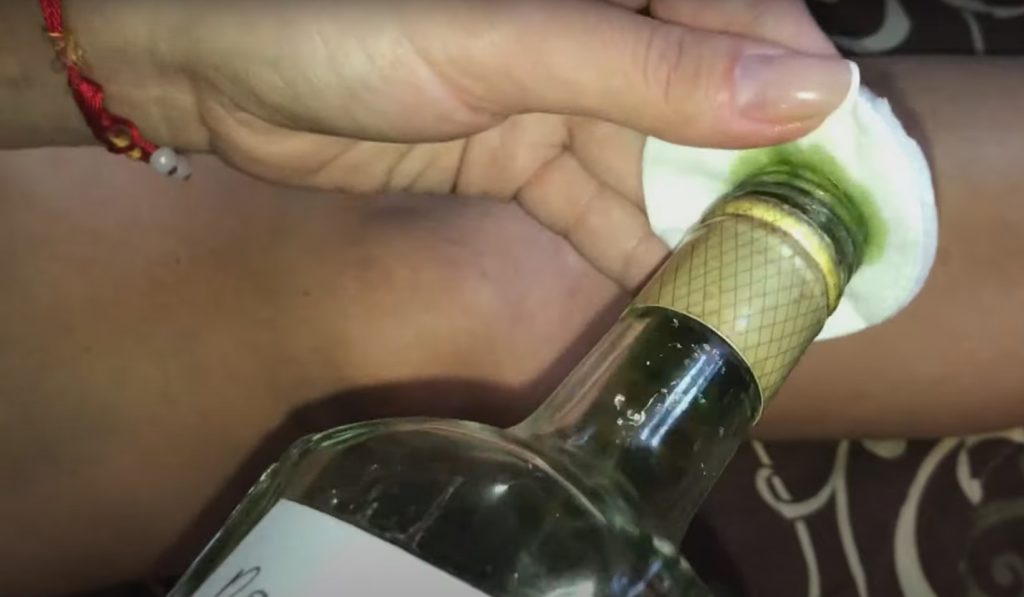 Następnie weź wacik, zwilż go nalewką. Delikatnie pocieraj i masuj kolano.