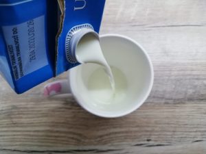 Następnie wlej mleko. Ponownie wszystko dobrze wymieszaj.