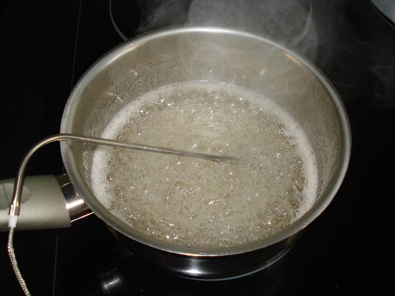 Do garnka wsyp cukier. Rozpuścić na małym ogniu, ciągle mieszając.