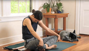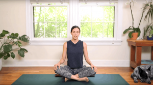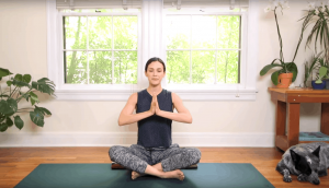 Połóż matę na podłodze i usiądź na złożonym ręczniku lub kocu. Usiądź w pozycji, która jest dla Ciebie wygodna i pozwala siedzieć z wyciągniętym kręgosłupem. Połóż ręce na kolanach, zamknij oczy i oddychaj głęboko. Klatka piersiowa jest wyłączona, spróbuj wyczuć każdy oddech, nawet wydech. Jeśli źle się czujesz na ziemi, możesz również ćwiczyć siedząc na krześle.
