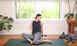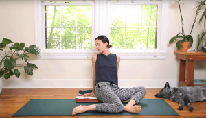 Odwróć głowę na przeciwną stronę, gdy nogi są pochylone. Pamiętaj, aby podczas każdego ćwiczenia oddychać głęboko. Zamień strony i spróbuj ponownie.