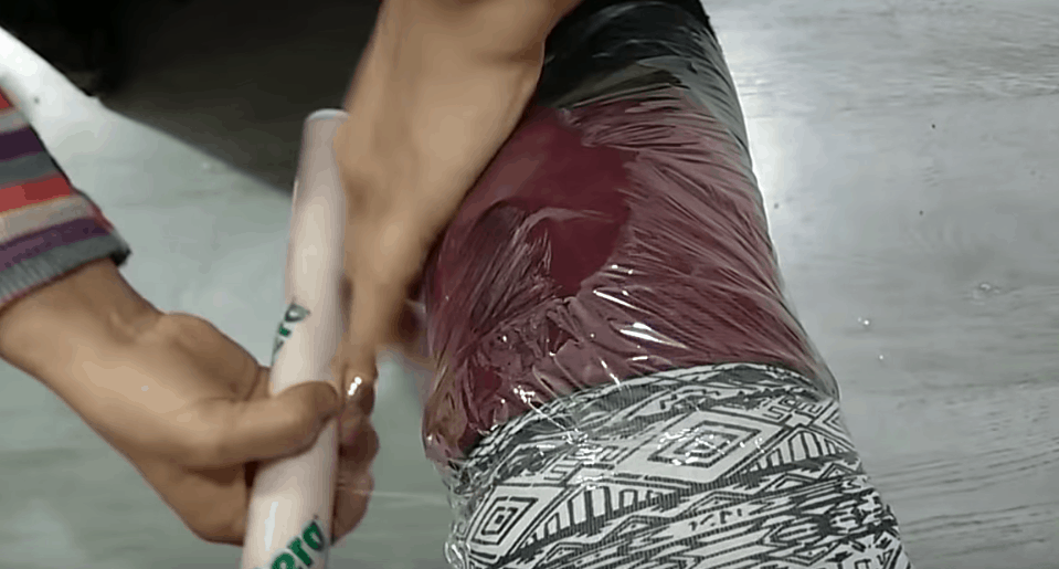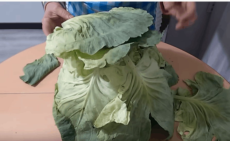 Następnie ułóż liście kapusty na kolanie i zawiń w gazę lub szmatkę, a następnie folią kuchenną .