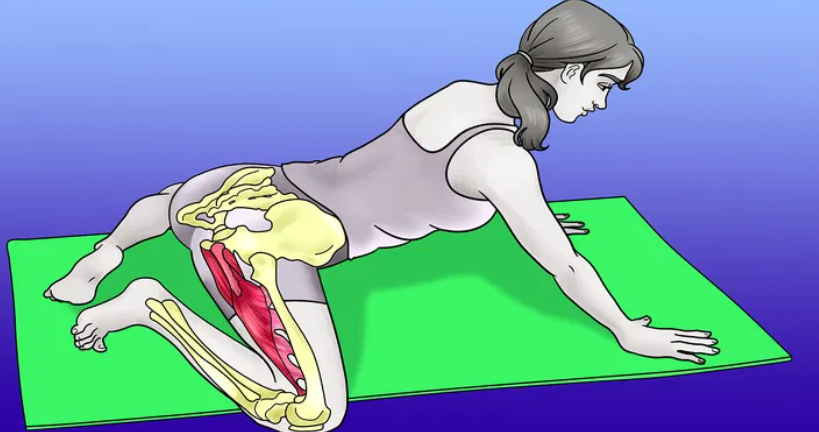 Usiądź na podłodze ze stopami za pośladkami i szeroko rozstaw kolana. Nie podnosząc nóg z podłogi, podnieś pośladki i wyciągnij ręce jak najdalej do przodu. Rozciągnij nogi, aż poczujesz, że mięśnie ud się rozciągają. Utrzymaj tę pozycję przez 2 minuty.