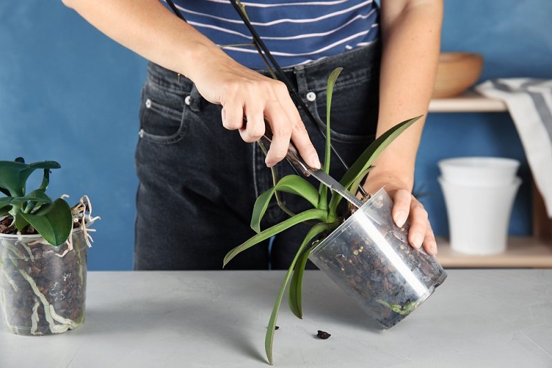 Roślinę wyjmij delikatnie z doniczki, korzenie otrzep z kory. Dokładnie się im przyjrzyj i przytnij tylko te, które wykazują oznaki choroby, lub są już zbyt stare, by spełniać swoją funkcję.