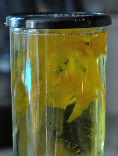 Obierz dwie cytryny i włóż je do słoika. Dodaj trochę oliwy z oliwek, zamknij szczelnie słoik i odstaw na 2 tygodnie. Po tym czasie preparat jest gotowy do użycia. Namocz gazę w przygotowanym preparacie i owiń nią bolące miejsce. Zabezpiecz przed ubrudzeniem pościeli i pozostaw na całą noc.
