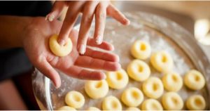 Gdy ciasto wyrośnie, weź niewielki kawałek i uformuj z niego kulki wielkości orzecha włoskiego. Każdą kulkę należy nakłuć palcem. Następnie wrzuć kulki z dziurkami do wrzącej, osolonej wody. Aby nie przywierały do dna, należy je od czasu do czasu zamieszać. Gotować jeszcze przez 2 minuty, aż będą w pełni ugotowane.