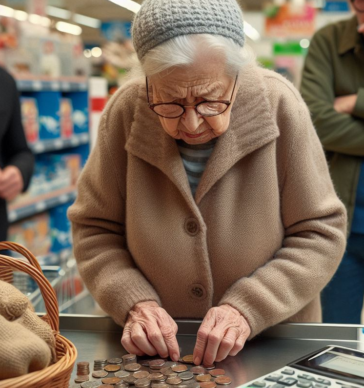 Kiedy w kolejce przede mną stanęła starsza kobieta z zakupami, od razu zwróciłem na nią uwagę. Była zgarbiona, ze zmęczonym spojrzeniem, a jej zakupy były skromne: kilka małych zabawek, słodycze i kolorowe kartki świąteczne. Kiedy kasjerka wybiła cenę, starsza pani zaczęła nerwowo przeliczać pieniądze – widać było, że każdy grosz jest dla niej na wagę złota.
