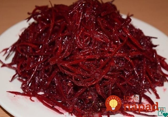 Drobno posiekaj czosnek, zetrzyj umyte i obrane buraki na tarce. Wymieszaj wszystkie składniki, aby przygotować marynatę. Do miski dodaj buraki i czosnek wraz z marynatą i wymieszaj. Doprowadź olej do wrzenia i wlej buraki, wymieszaj i odstaw sałatkę na co najmniej 3 godziny.