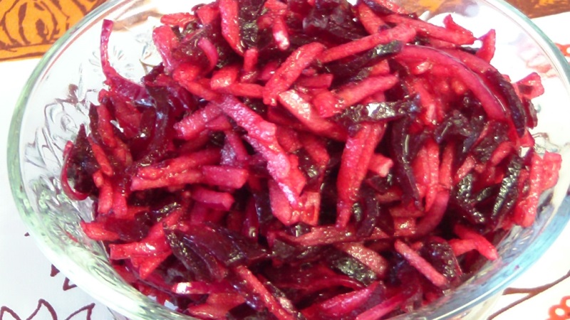 Ta warzywno-owocowa sałatka jest szczególnie popularna wśród osób, które chcą schudnąć i zdrowo się odżywiać. Ponadto jest bogata w witaminy, a słodko-kwaśne jabłko fantastycznie uzupełnia typowy słodki smak buraków.