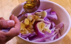 Wszystko dokładnie wymieszaj i przykryj miskę np. talerzem. Włóż do lodówki i pozostaw tam do następnego dnia. Następnie usuń całą cebulę i czosnek z miski, pozostawiając w niej tylko czysty syrop. Następnie przelej do zamykanego słoika i przechowuj w lodówce.