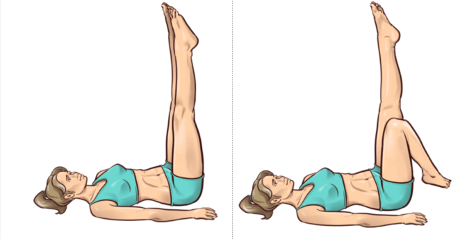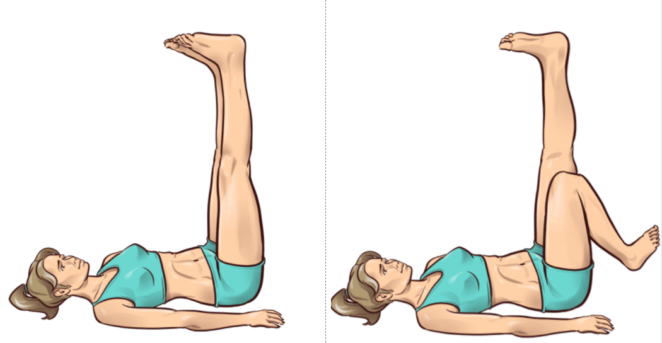 Część pierwsza: połóż się na plecach z nogami w górze i palcami stóp ułożonymi równolegle do ciała. Utrzymuj kolana złączone i zginaj nogi jedna po drugiej.