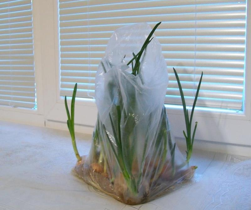 Po tym czasie torbę przenieś na jasny parapet, ale nie rozwiązuj jej, dopóki szczypiorek nie urośnie aż do górnej części torby, Wtedy możesz ją rozwiązać, pamiętając o tym, aby podłoże było cały czas odpowiednio wilgotne.