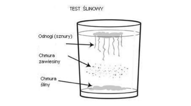 Test należy wykonać rano, po przebudzeniu, jeszcze przed umyciem zębów. Zbierz trochę śliny w ustach, weź szklankę wody i napluj do niej. Pamiętaj, aby szklanka była czysta i przezroczysta, abyś mógł obserwować, jak zachowuje się ślina. Obserwuj ją co 15 minut przez godzinę. O zakażeniu grzybem świadczyć będą: