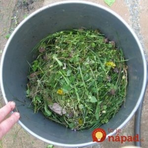 Najlepszy nawóz dostaniesz, jeśli skoszona trawa nie będzie do końca czysta, a w skoszonych resztkach jest też pokrzywa lub mniszek lekarski – dostaniesz też mikroelementy i cenną krzemionkę). Wylej kilka wiader wody na trawę – obowiązuje stosunek 1:1 (ile trawy, ile wody).