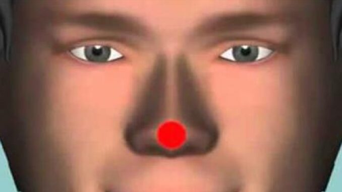 Patrz na sam czubek nosa, potem przed siebie i na boki, nie ruszając oczami. Spójrz na grzbiet nosa, a następnie – do przodu i na boki. Następnie spójrz na punkt pomiędzy brwiami, a następnie spójrz do przodu i ponownie na boki, nie poruszając wzrokiem.