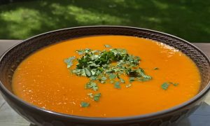 Na koniec posolić lub doprawić zupę innymi przyprawami, wyłożyć na talerze, posypać grubo posiekaną natką pietruszki i podawać.